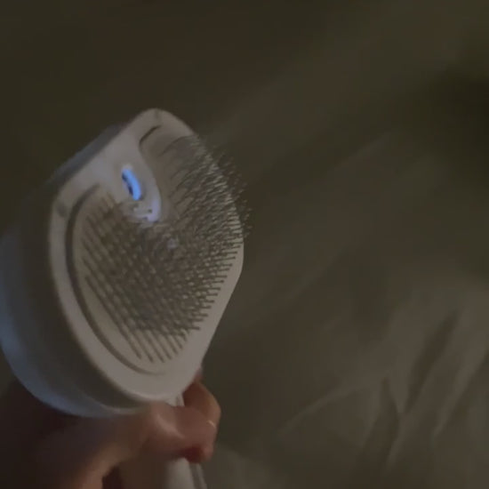 Water inside the brush helps fur stick easily to the bristles for a cleaner grooming experience.